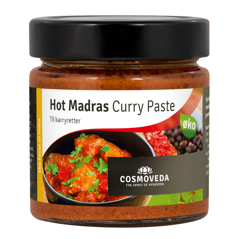 Lækker økologisk Curry Paste fra Cosmoveda er velegnet til kød- og grøntsagsretter.