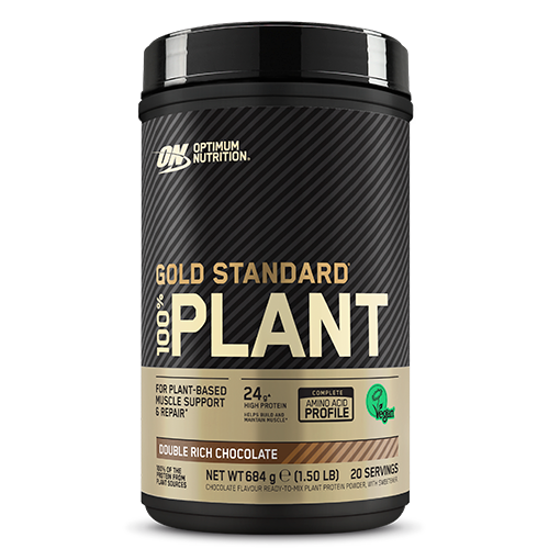Optimum Nutrition Gold Standard 100% Plant Chocolate (684 g) er et velsmagende vegansk og plantebaseret proteinpulver, der er velegnet til øget muskelmasse og vedligeholdelse af muskelmasse. Dette proteinpulver er fremstillet med 24 gram protein per portion, samt indeholder naturligt 9 essentielle aminosyrer/BCAAs.