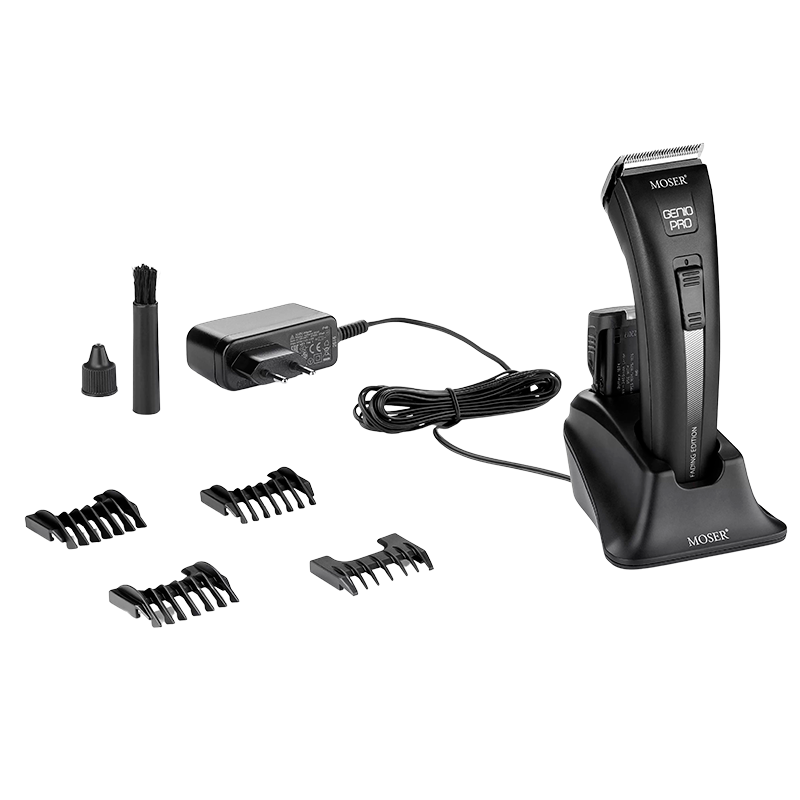 Genio Pro Fading Edition er en ny innovativ hårklipper fra Moser, som aldrig svigter. Den er blandt de mest robuste hårklippere på markedet. Med den indbyggede Tyske-motor er du sikker på et fantastisk resultatet hver gang. Du kan nemt tage bladet af for at rense. Hårklipperen tager 80 minutter at oplade og har en driftstid på op til 120 min.