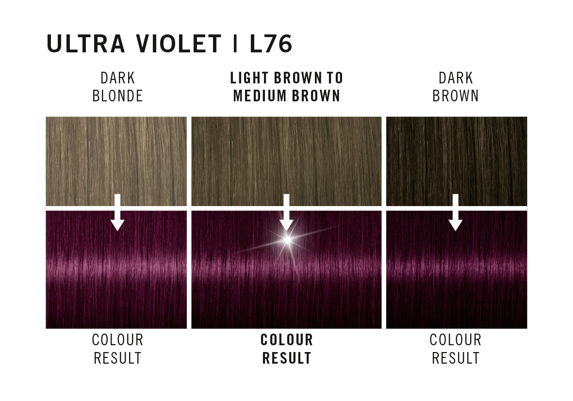 Schwarzkopf Live Color L76 Ultra Violet giver dit hår en intens, levende violet farve. Nem at bruge derhjemme og skaber et iøjnefaldende look, der holder.