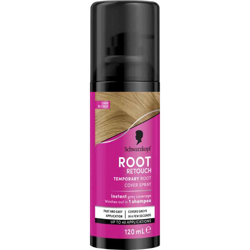 Dæk dine udvoksninger hurtigt og nemt med Schwarzkopf Root Retoucher i mørkeblond. Denne spray giver en effektiv, midlertidig dækning og er ideel til at friske din hårfarve op mellem farvninger. En flaske rækker til op til 40 anvendelser.