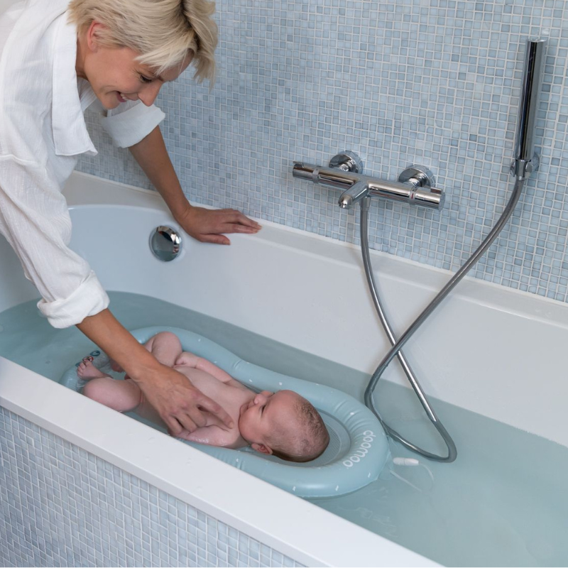 Skab en rolig og behagelig badestund for din nyfødte. Denne oppustelige bademadras fra Doomoo giver optimal støtte og komfort, både i badekarret og i poolen. Perfekt til babyer fra fødsel og op til 7 kg.
