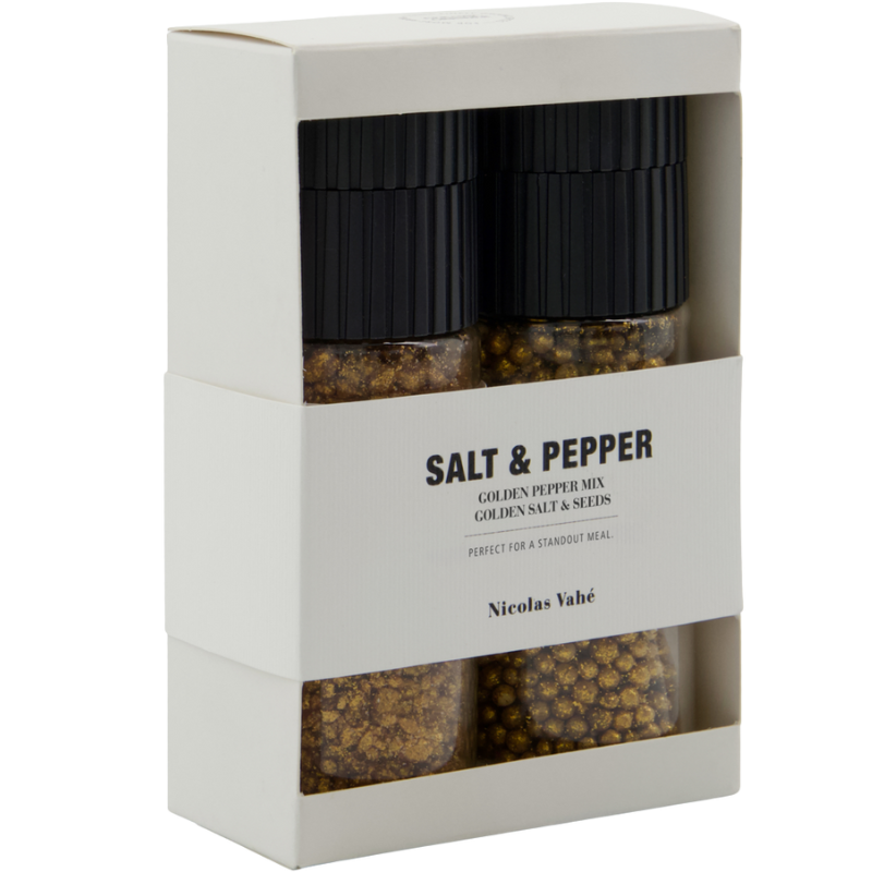 Forvandl både daglige og særlige måltider til noget helt specielt med denne luksuriøse gaveæske, der består af en Golden Pepper Mix og Golden Salt & Seeds. Giv retterne et friskkværnet og visuelt løft, hvad enten du serverer for familien eller inviterer gæster på middag.