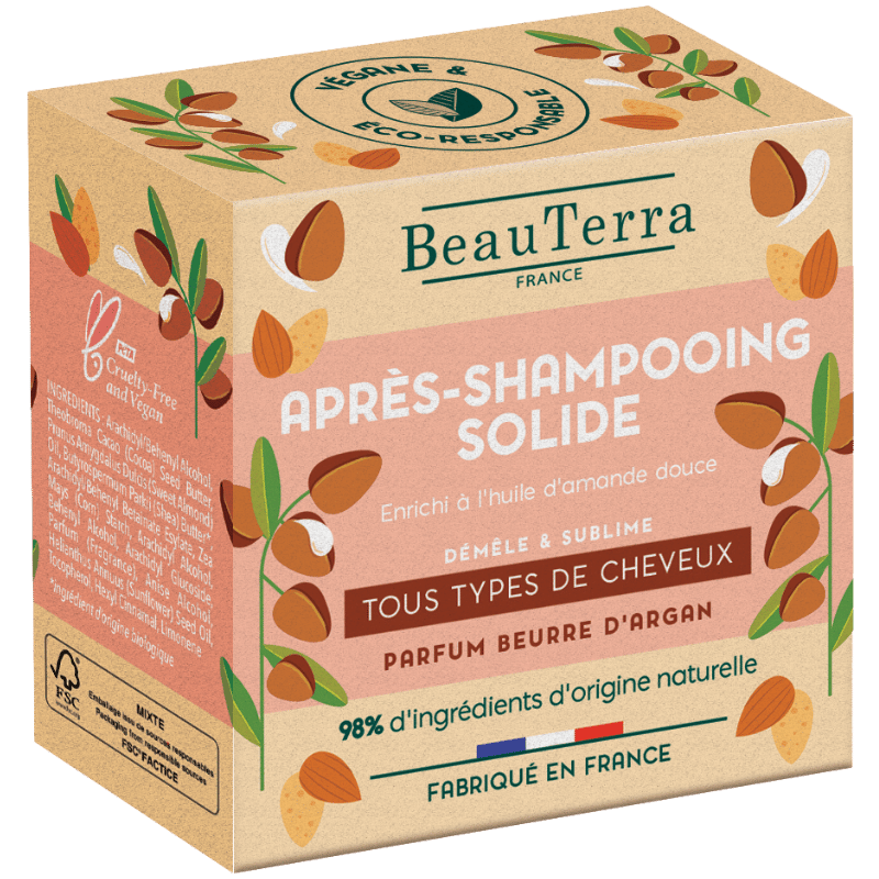 Forkæl dit hår med en plejende og miljøvenlig balsam, der kombinerer naturlige ingredienser med effektiv hårpleje. Beauterras faste balsam er beriget med sød mandelolie, som blødgør, udglatter og gør håret lettere at rede ud – uden at tynge det.