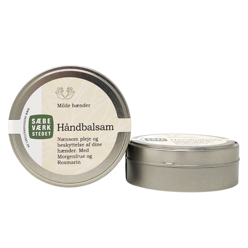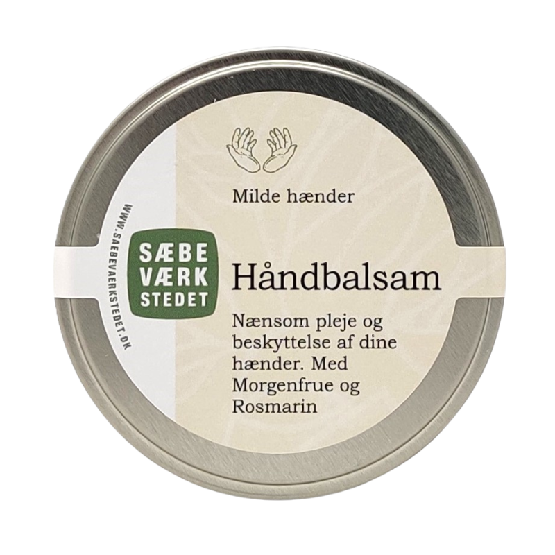 Sæbeværkstedet Håndbalsam (75 gr) er idéel til beskyttelse og pleje af hænderne. Den indeholder olivenolie, bivoks og sheasmør (altsammen økologisk), en idéel kombination af helende, blødgørende og beskyttende ingredienser. Hænderne bliver udsat for lidt af hvert i løbet af en dag. Slid, kulde og hyppig håndvask kalder på særlig pleje.