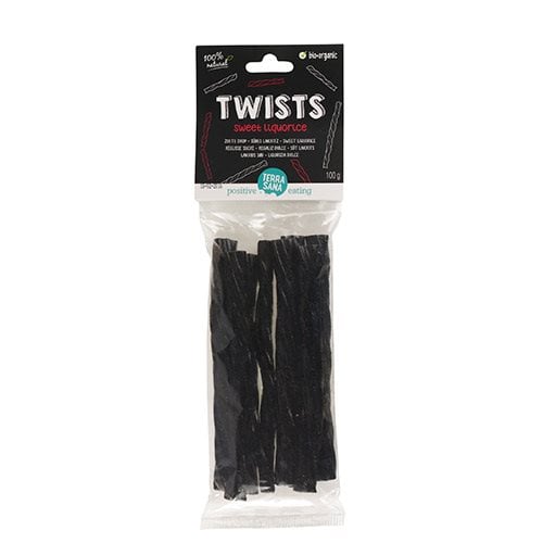 Twists Sweet Liquorice fra Terra Sana er rigtig lækkert økologisk lakrids i bedste finske kvalitet, som er vegansk.Lakridsen er pakket med 10 stænger pr. pose. Brugsanvisning og anvendelse: Indeholder lakrids. Personer, der lider af forhøjet blodtryk, bør undgå for stort indtag.