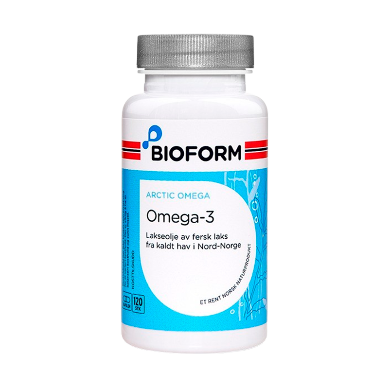 Bioform Omega 3 (NordNorsk Lakseolie) (120 kaps) er et omega 3 kosttilskud, der er fremstillet med omega-3 fedtsyrer fra laks og havmus. Havmus er en dybhavsfisk, der lever på ca. 100 meters dybde. Fiskeolie indeholder naturligt DHA og EPA, som er essentielle fedtsyrer.