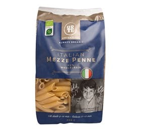 Urtekrams økologiske fuldkornspenne stammer fra Italien og er lavet af fuldkornsdurumhvedemel og vand fra italienske Dolomitter, hvorefter de tørres i bronzeforme.