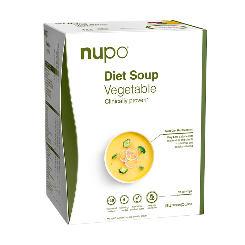 Nupo Diet Soup Vegetable er en lækker grøntsagssuppe, som du kender den, bare med et lavt kalorieindhold, som er lavet af Nupo til at erstatte en fuld dagskost, for at kunne hjælpe dig med et let vægttab. Smagen er af lækre grøntsager, og suppen er nem selv at justere med krydderurter og krydderier, så den er smagt til til din fornøjelse. Suppen kan let kombineres med energireduceret aftensmad eller frokost. En pakke indeholder 12 pakker, og kombineret med andre produkter fra Nupo Diet serien, indtager du max 700 kcal om dagen.