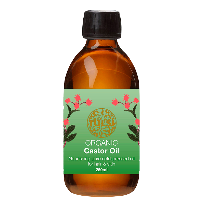 Tulsi Castor Olie Ø (250 ml) er en økologisk koldpresset massageolie med ricinusolie, omega-6-fedtsyrer, vitamin E og aminosyrer, velegnet til hud, hår og massage.