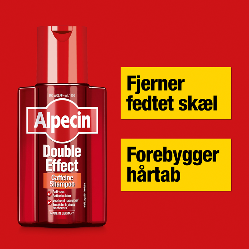 Alpecin Double Effect Shampoo (200 ml) er en effektiv to i en shampoo til dig, der både vil forebygge skæl og hårtab. Plej dit hår med optimal effekt med denne shampoo, der fjerner skæl fra hovedbunden med sin skånsomme formel, og samtidigt forebygger hårtab med et unik koffeinkompleks.
