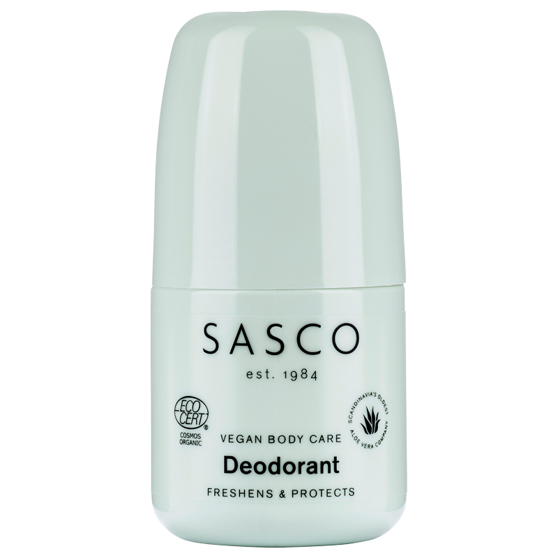 Deodoranten fra Sasco er vegansk funderet og uden både aluminium- og alkohol. Deodoranten er beriget med plejende økologisk Aloe Vera og nærende vegetabilske olier, som hjælper med at gøre huden under armene blød.