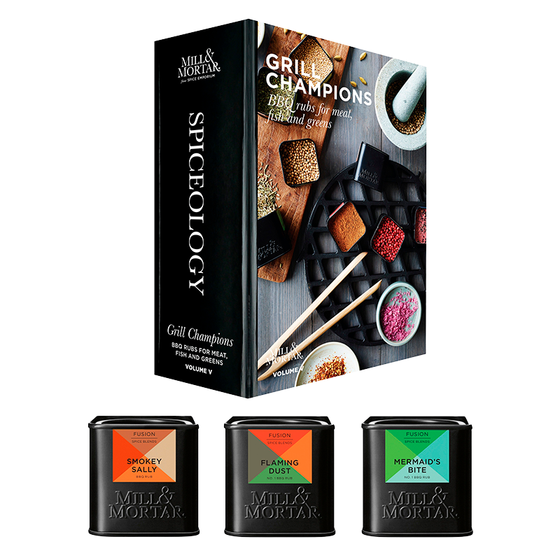 Løft dine grillretter til nye højder med Grill Champions gaveæsken fra Mill & Mortar. Sættet indeholder tre spændende og unikke grill rubs – Smokey Sally, Mermaids Bite og Flaming Dust – der giver dig mulighed for at udforske nye, lækre smagskombinationer.