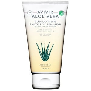Avivir Aloe Vera Sun Lotion SPF 30 (150 ml) er en solcreme med 70% økologisk Aloe Vera, UVA- og UVB-beskyttelse, vegetabilske olier, vandafvisende og uden parfume eller parabener.
