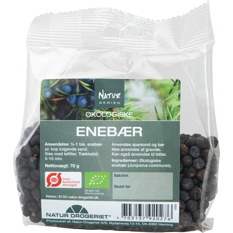 Natur Drogeriet Enebær Hele Ø (70 g) er økologiske og tørrede enebær, der er hele.
