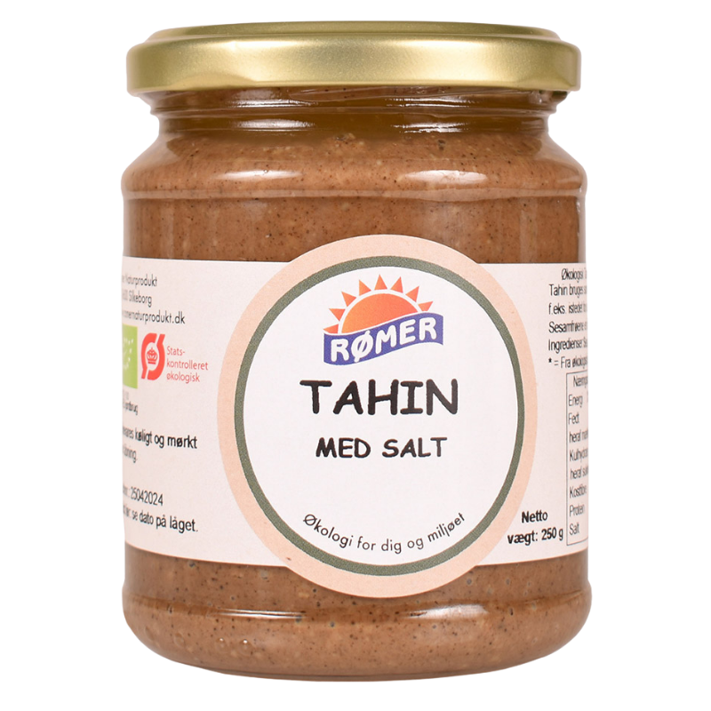 Tahin sesamsmør med salt Sesamfrøene i denne tahin er specielt udvalgte pga. deres aromatiske, nøddeagtige smag og lille indhold af bitterstoffer. Ristes nænsomt og formales derefter til den blødeste sesamsmør. Tahinens aromatiske, nøddeagtige smag egner sig specielt godt i mellemøstlige retter, hvor det primært bliver anvendt til hummus. Kan også nydes som smørepålæg og i dressinger.