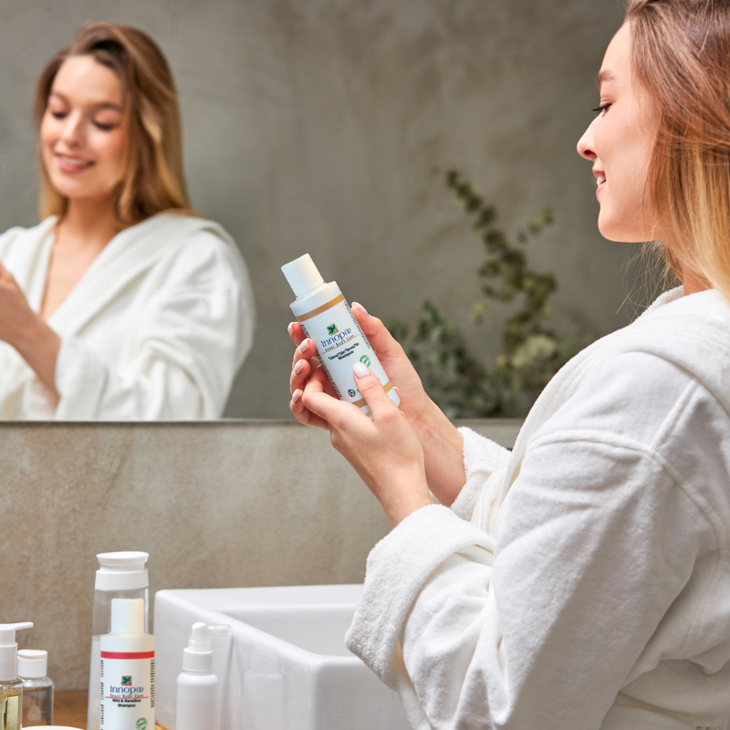 Denne skælshampoo fra Innopoo er uden parfume, farve og parabener. Shampooen indeholder højt raffineret special-tjære, men bare rolig - shampooen har ikke lugt af tjære. Anvend 1-2 gange ugentligt.