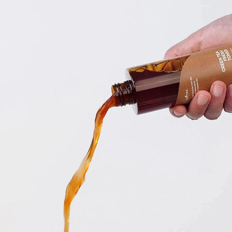 Isntree Green Tea Fresh Toner er en ansigtstoner med 80 % grøn te-ekstrakt fra Jeju Island, planteekstrakter og hyaluronsyre, velegnet til kombineret og fedtet hud. Vegansk og cruelty-free.