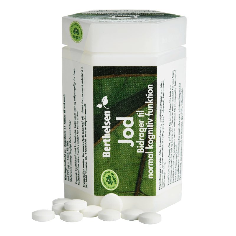 Berthelsen Jod har bl.a. indflydelse på kroppens stofskifte. Bidrager til normalt energistofskifte.
