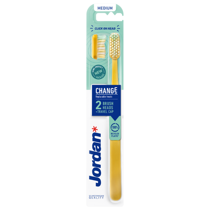 Få en effektiv og hygiejnisk tandbørstning med Jordan TB Change. Sættet indeholder et håndtag og to medium børstehoveder, der nemt klikkes på, samt en praktisk hætte til beskyttelse og opbevaring.