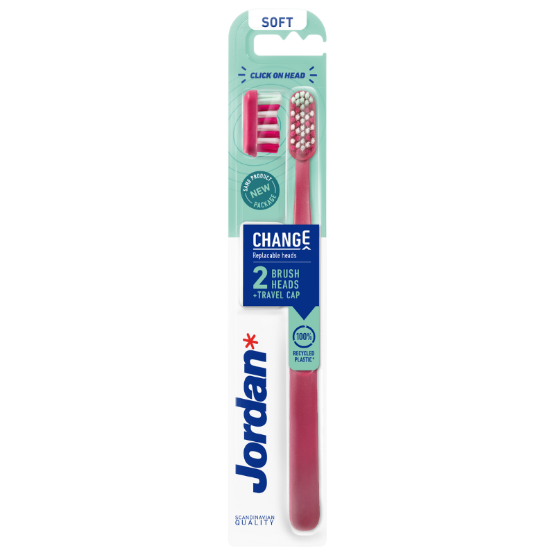 Opnå en effektiv og skånsom tandbørstning med denne smarte tandbørste fra Jordan. Sættet indeholder et håndtag og to udskiftelige, bløde børstehoveder, der let klikkes på, samt en praktisk hætte til hygiejnisk opbevaring derhjemme eller på rejsen.