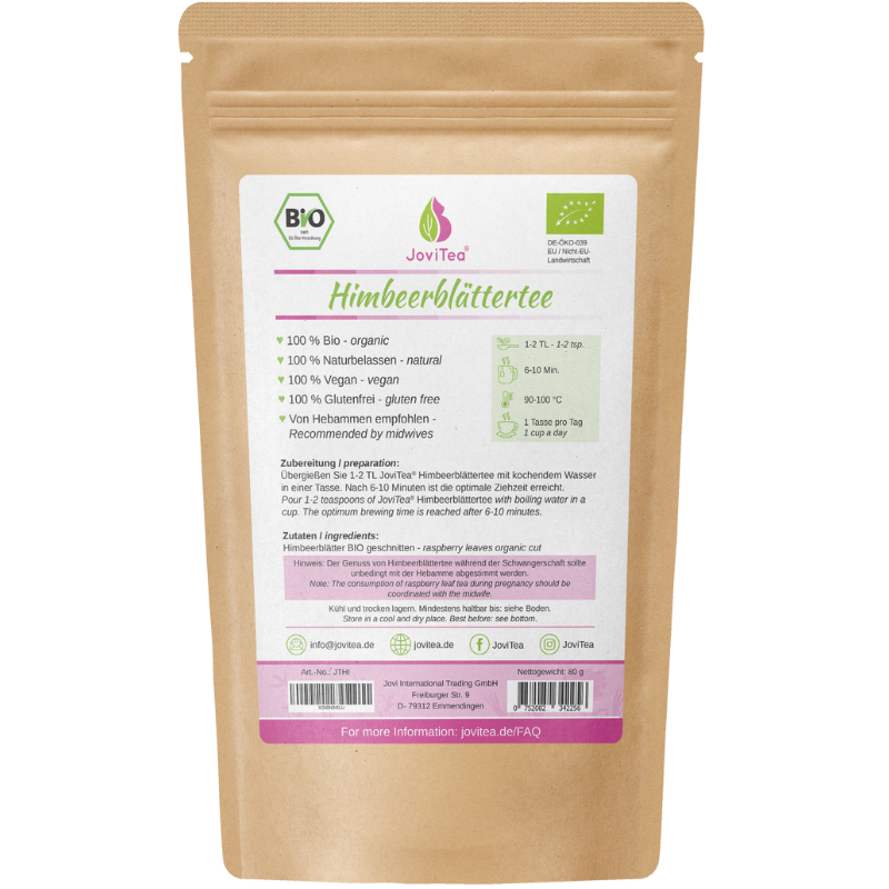 Nyd en kop ren og mild te med JoviTea Økologisk Hindbærblad Te. Bladene er skånsomt tørret og snittet for at bevare den fine smag. Teen er 100% økologisk og fri for tilsætningsstoffer for en naturlig oplevelse.
