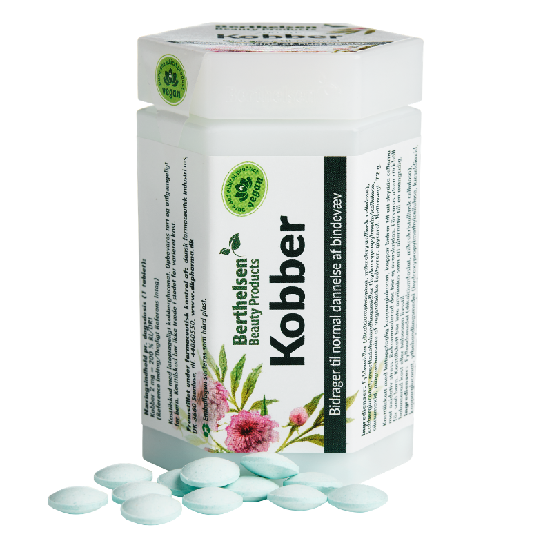 Berthelsen Kobber er et spormineral. Medvirker bl.a. til energiomsætning og vedligeholdelse af pigmentering af hud og hår.