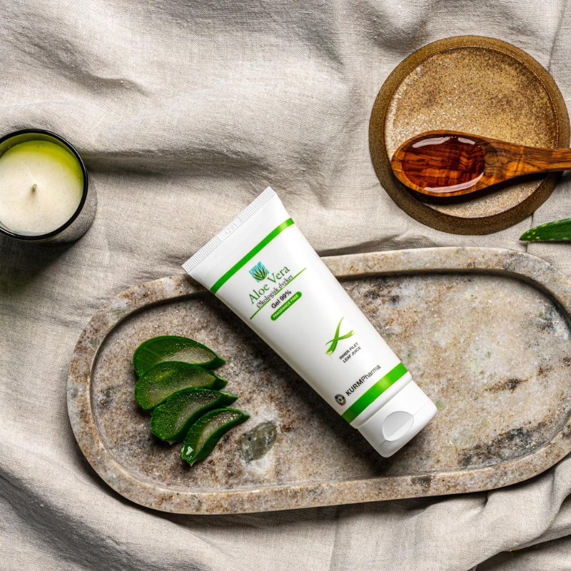 Oplev den beroligende og genopbyggende virkning af KURM Aloe Vera Gel. Med 99% ren aloe vera giver den en øjeblikkelig kølende effekt, perfekt som aftersun eller til daglig pleje. Formlen er parfumefri og skånsom mod huden.