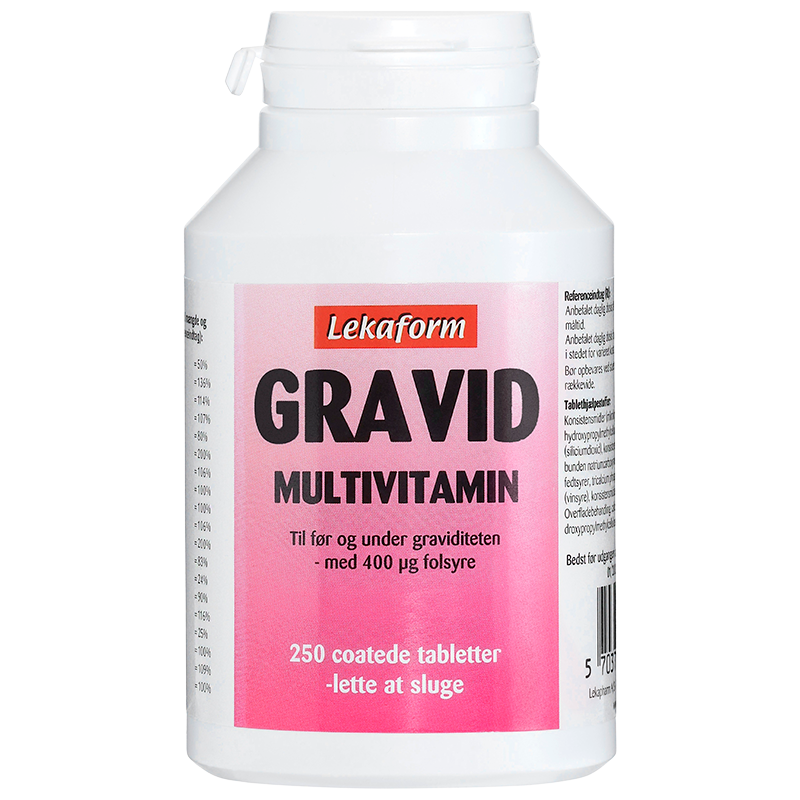 Lekaform Gravid Multivitamin støtter dig før og under graviditet med folsyre, D-vitamin og zink – nemme tabletter, dansk kvalitet, trygt valg.