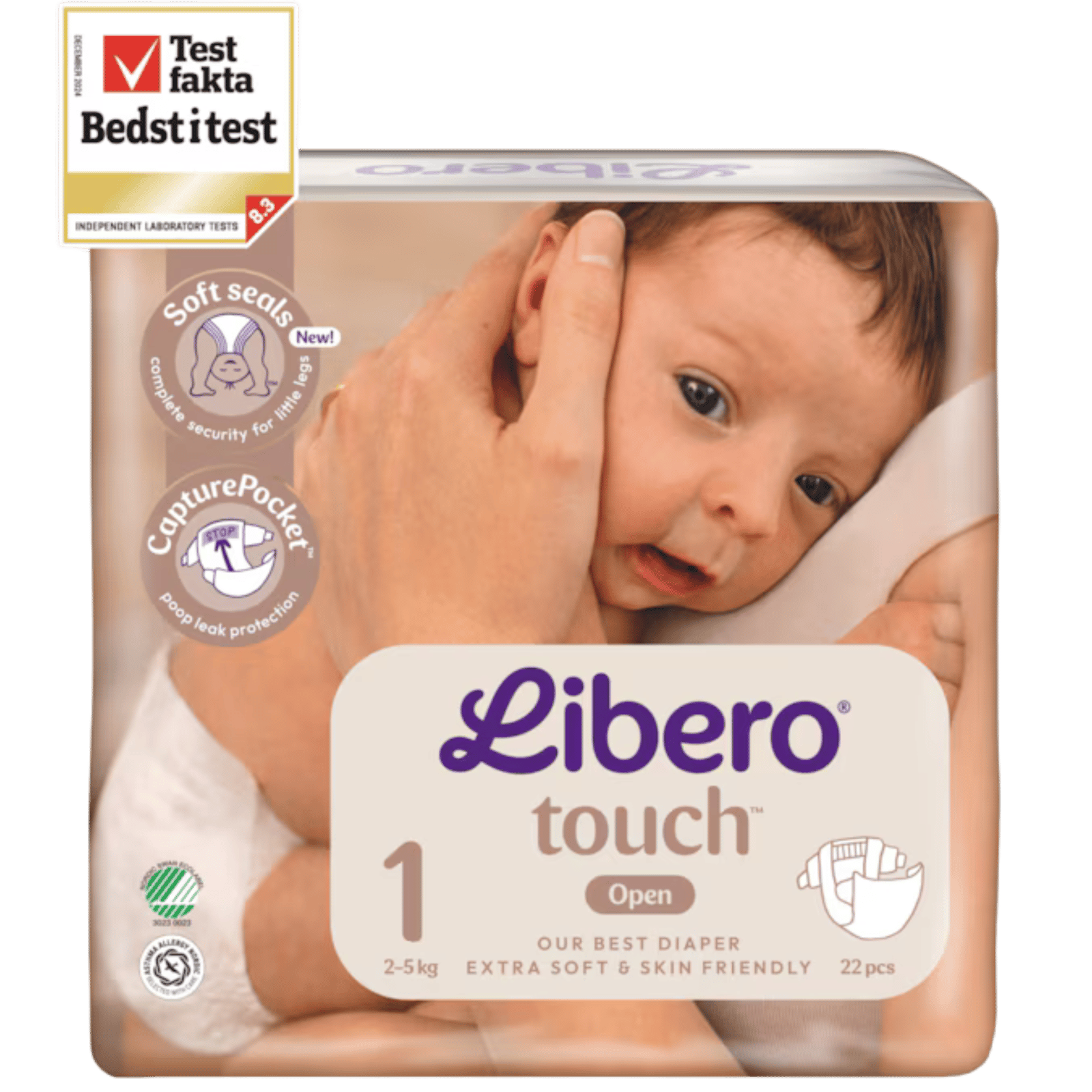 Liberos skånsomme, tynde og bløde ble til den nyfødte baby med en vægt på 2-5 kg. Fremstillet i et fint, åndbart materiale.