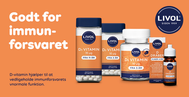 Danske Livol står bag et anerkendt sortiment af kosttilskud med mineraler og vitaminer. Med Livol er du sikret en din daglige dosis af vitaminer, der bidrager din krops balance og velvære - året rundt.