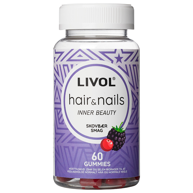 Livol Ultimate Hair & Nails Gummies (60 stk) er velsmagende gummies med vitaminer, som gør det sjovere som voksen at tage dit vitaminkosttilskud. Dette kosttilskud indeholder vitaminer, der bidrager til vedligeholdelse af normal hud, hår og negle, i form af biotin, zink og selen.