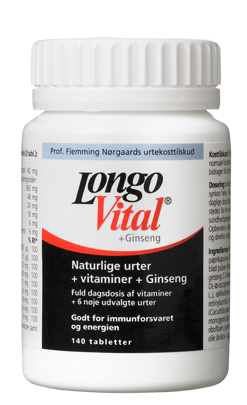 LongoVital +Ekstra Energi er tilsat ginseng og indeholder desuden vitaminer og seks speciel udvalgte urter.
