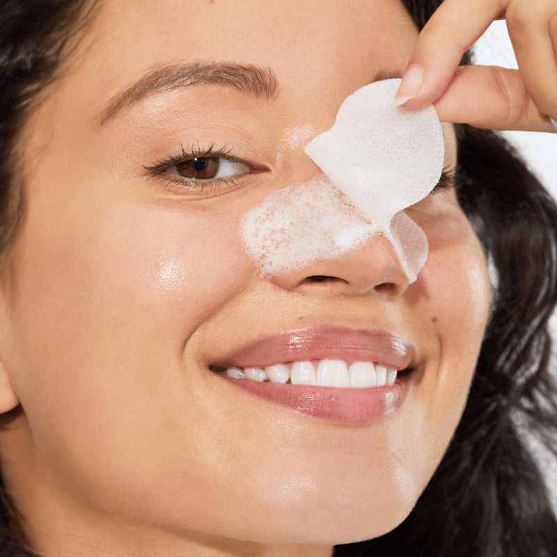 Denne dobbeltsidede patch skummer op for at opløse urenheder og overskydende olie og kan derefter vendes for skånsom eksfoliering med silikonebørster.