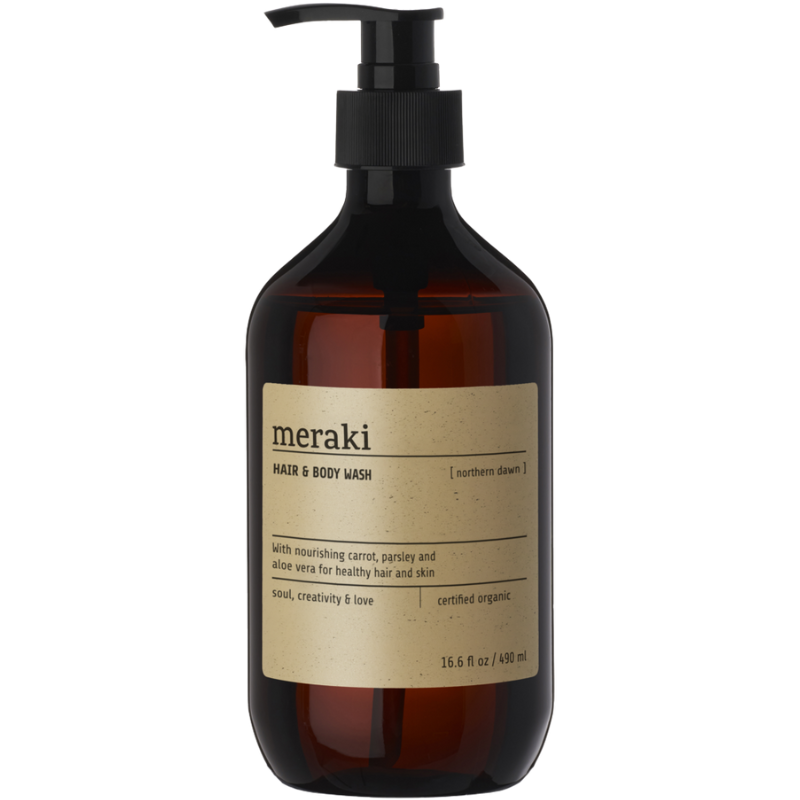 Forenkl din daglige rutine med denne certificeret økologiske Hair & Body Wash fra Meraki. En mild og plejende sæbe til både hår og krop, der efterlader huden ren og velduftende. Perfekt til dig, der ønsker færre produkter på badeværelset.