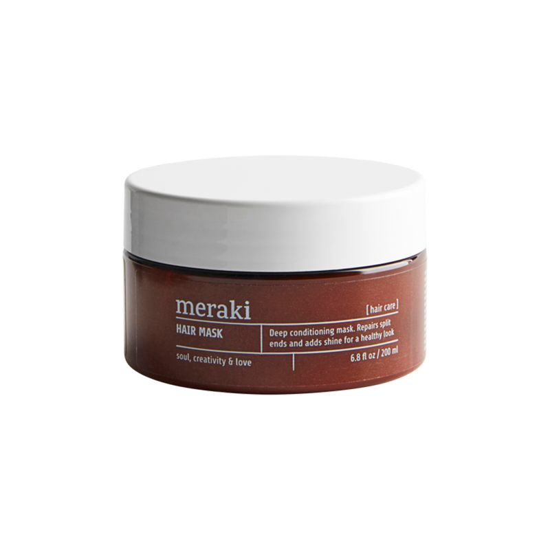 Dette er en hår maske fra Meraki, som er en dyb kondisionerende maske. Masken reparere dine spaltede spidser, samt reparere hver tråd inde fra og ud. Dette4 giver dit hår en naturlig smuk glans efter brug. Masken er fyldt med vitaminer og kokosolie.