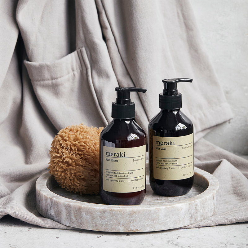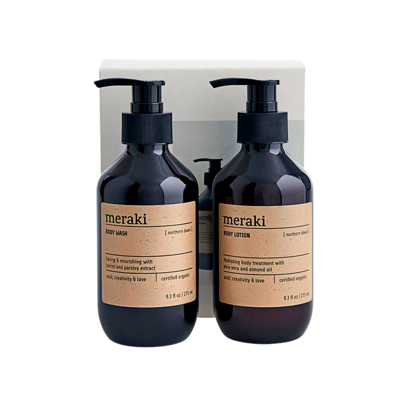 Overrask en ven eller familiemedlem med Merakis gaveæske, der indeholder en skøn bodywash og en fortryllende bodylotion med den populære duft, Northern Dawn. Begge er økologiske og tilbyder næring og fugt til huden. Duften af appelsiner, cedertræ og sød balsamico skaber en behagelig atmosfære af velvære. En gave, der glæder sanserne og forkæler både krop og sjæl.