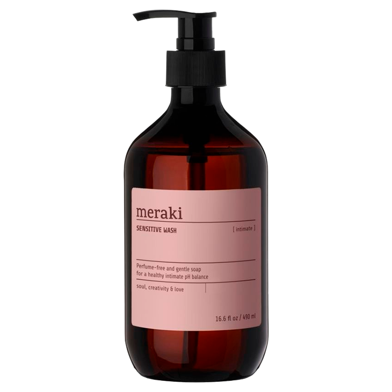 Merakis sensitive wash er en parfumefri 2-i-1 løsning til både kroppen og intimområdet. Mælkesyre opretholder en sund pH-værdi, mens aloe vera og glycerin fugter og blødgør huden.