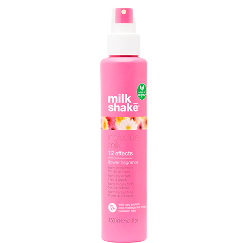 Giv dit hår den ultimative pleje med Milk\_shake Incredible Milk. Denne leave-in spraykur med 12 plejende effekter og en skøn blomsterduft efterlader dit hår sundt og velplejet. Formlen er fri for parabener og sulfater.