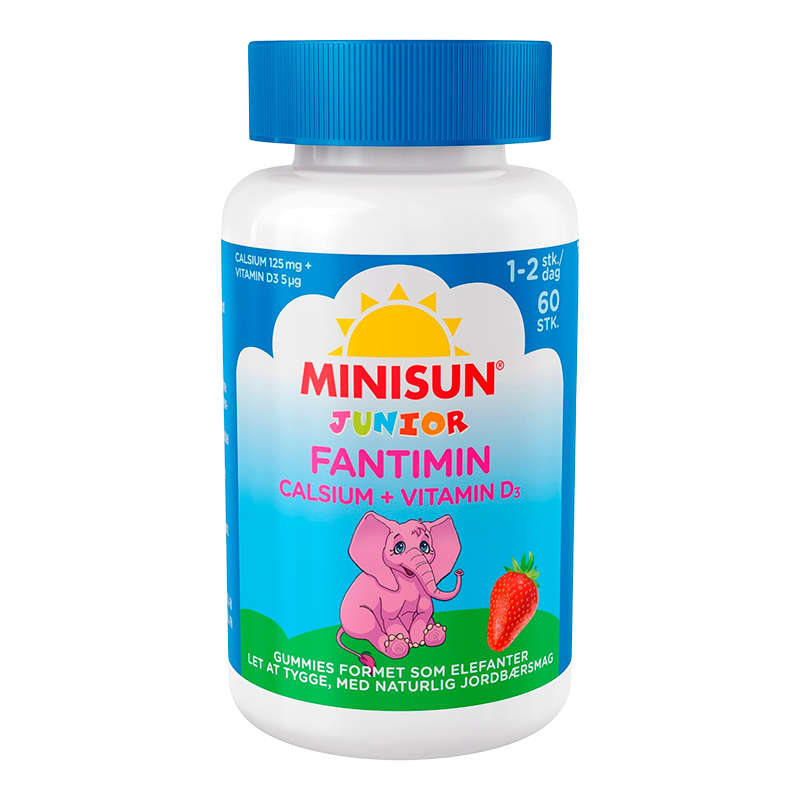 Minisun Junior Fantimin (60 stk) er et sjovt kosttilskud til børn i form af elefantformede gummies, der gør det sjovt og let for børn at indtage. Disse gummies har en skøn og naturlig smag af jordbær, og de kan let tygges.