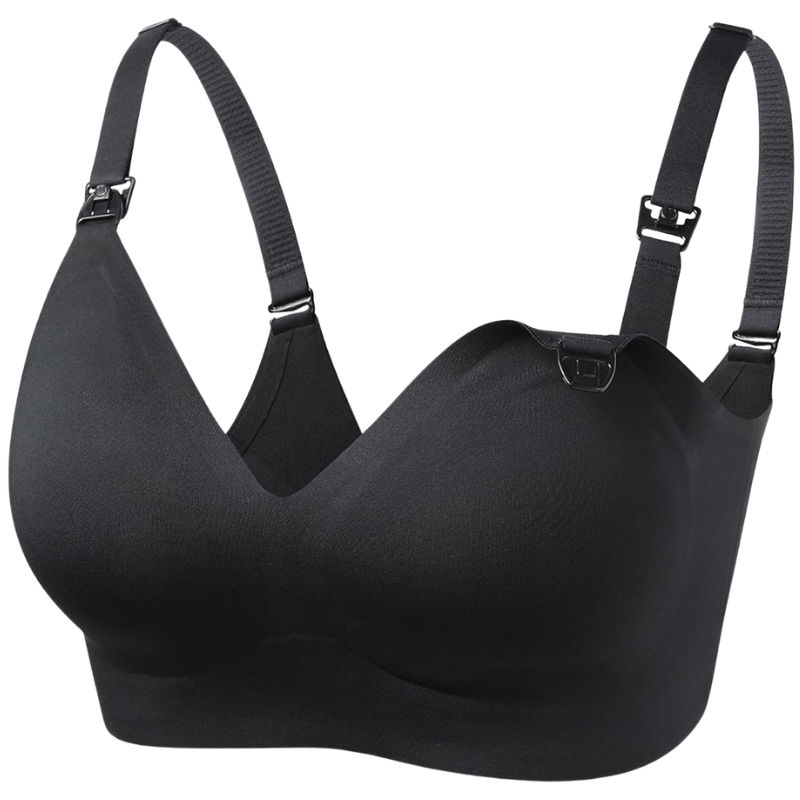 Momcozy YN21 Ammebh i Sort tilbyder smørblød, åndbar komfort med sømløs, trådløs støtte. Den har justerbare puder, et blødt bånd og en én-hånds lukning, hvilket gør den perfekt til amning, pumping og daglig brug.