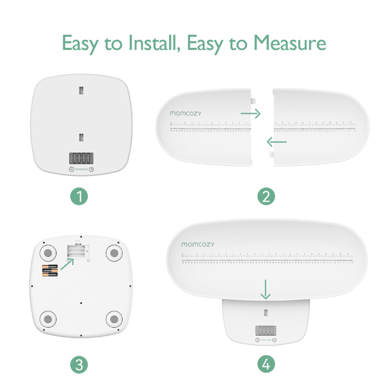 Momcozy Multi-Funktion Vægt & Højde Måleskala giver præcise målinger til spædbørn, småbørn, kæledyr og voksne op til 150 kg. Skift nemt mellem 5 enheder for alsidig, pålidelig overvågning for hele familien.