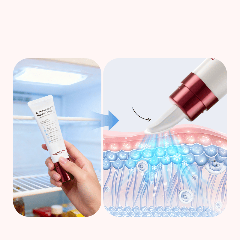 Momcozy ComfortNip™ tilbyder øjeblikkelig kølende lindring med en berøringsfri keramisk applikator og en nærende, lanolin-fri creme. Hurtigt absorberende og babyvenlig. Den beroliger og beskytter delikat hud—der er ikke behov for at tørre af før amning.
