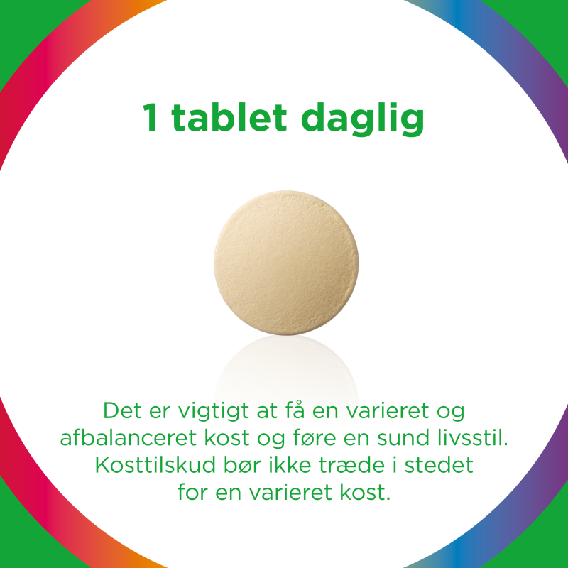 Multi-tabs Family er en multivitamin- og mineraltablet til voksne og unge 11+. Med en tablet om dagen får du et dagligt tilskud af 21 vitaminer og mineraler.Indhold