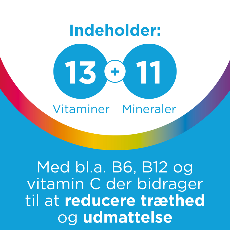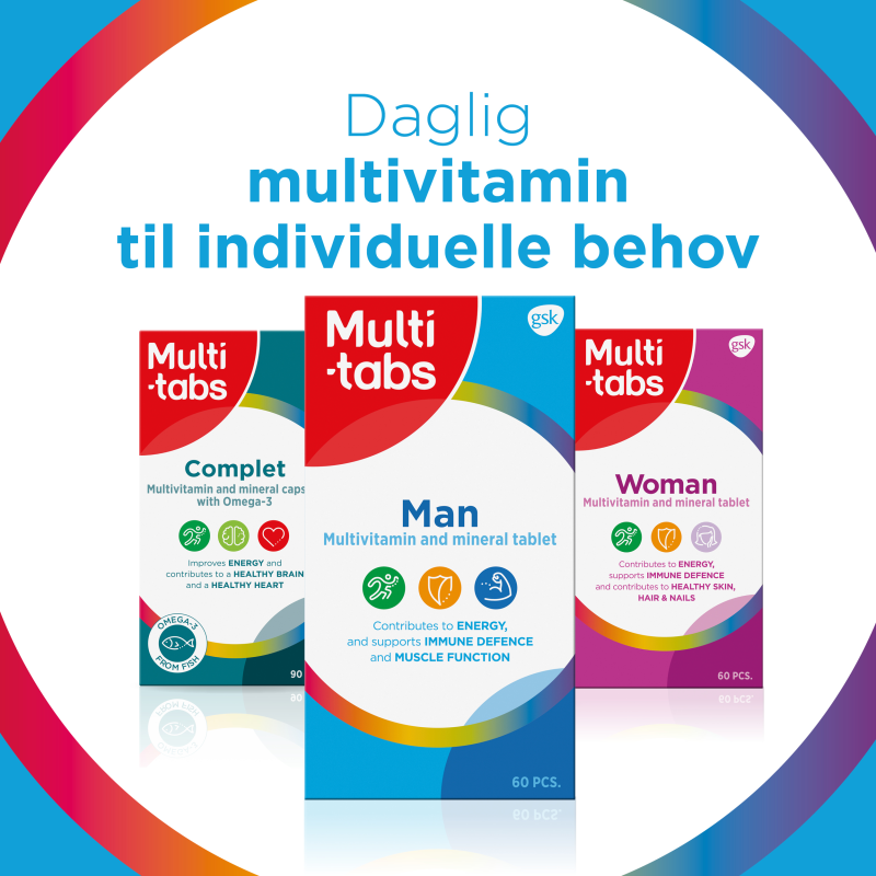 Multi-tabs Man er en daglig multivitamin- og mineraltablet tilpasset mænd. Indeholder bl.a. B6, B12 og vitamin C, som bidrager til at mindske træthed og udmattelse.Ingredienser