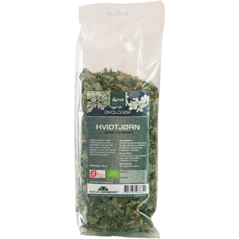 Natur Drogeriet Hvidtjørn Ø er en økologisk urtete lavet af hvidtjørn. Den er perfekt til en beroligende stund og understøtter dit velvære. Teen er certificeret økologisk, hvilket sikrer renhed.