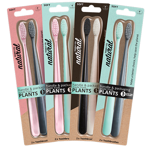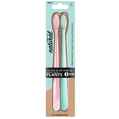 Natural Family Co. Bionedbrydelige Tandbørster Ass. Farver (2 stk)