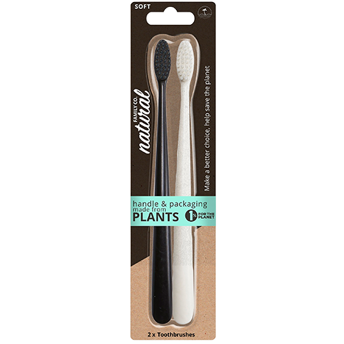 Giv dine tænder en skånsom og effektiv rengøring med disse bionedbrydelige tandbørster fra Natural Family Co. Pakken indeholder to tandbørster med bløde børstehår, som er et miljøvenligt valg til din daglige mundplejerutine.