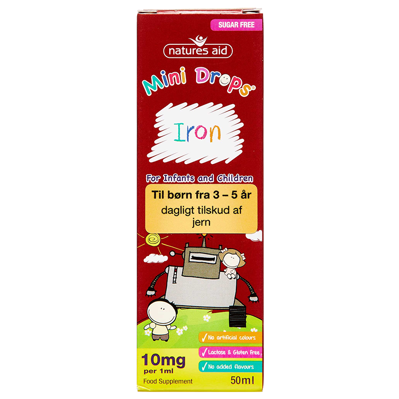 Disse jern dråber fra Natures Aid er et dagligt tilskud af jern til børn fra 3 - 5 år. Jern minerallet har flere vigtige funktioner i kroppen og bidrager bl.a. til normal kognitiv udvikling og et normalt immunsystem hos børn. I kosttilskuddet er der også tilsat c-vitamin, som forbedrer og øger optagelsen af jern.
