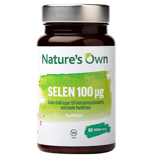 Natures Own Selen 100 µg (60 tabl) er et økologisk og vegansk kosttilskud, der er fremstillet med 100 µg selen fra mineral beriget gær. Selen er et mineral, der bidrager til immunsystemets og normalt hår og negle.